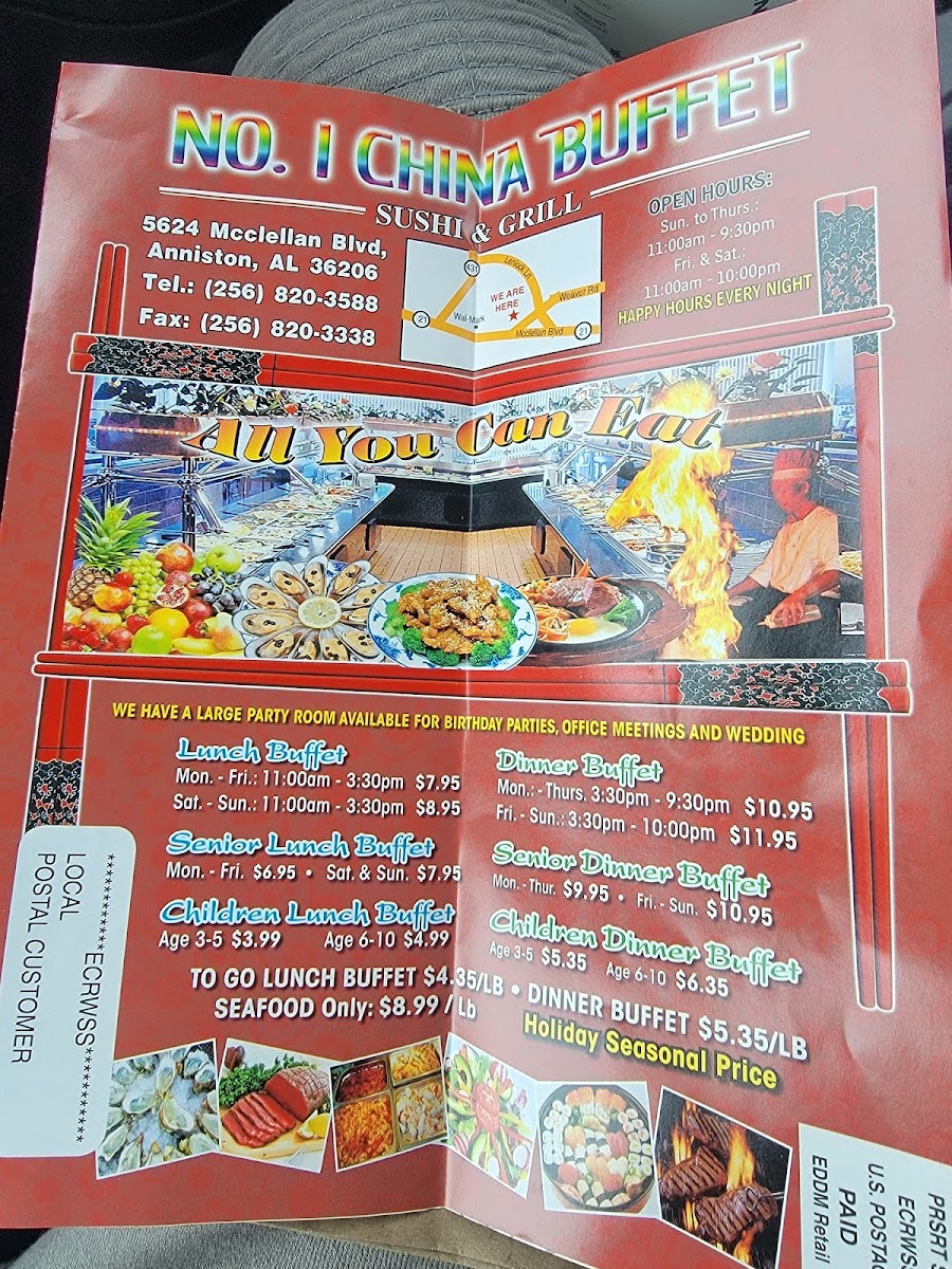 2 egg rolls, 2 chicken wings, 2 fantail shrimps, 2 b-b-q ribs, 2 crab rangoon and 2 pork steak